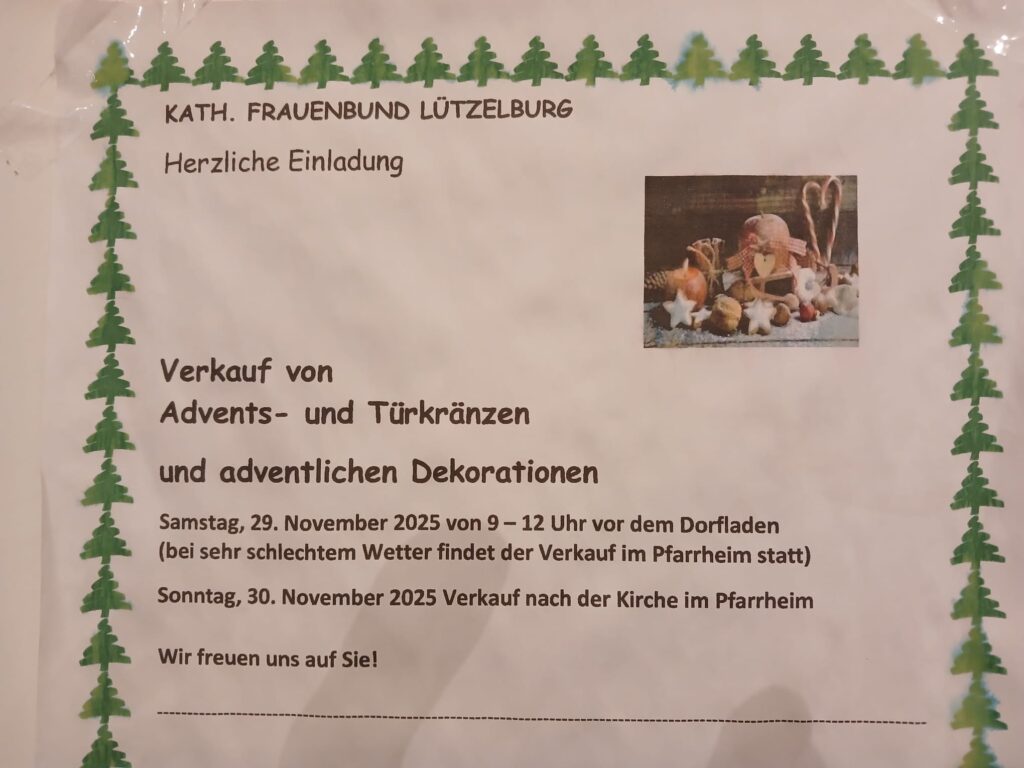- Herzliche Einladung zum Adventsmarkt des Frauenbundes Lützelburg